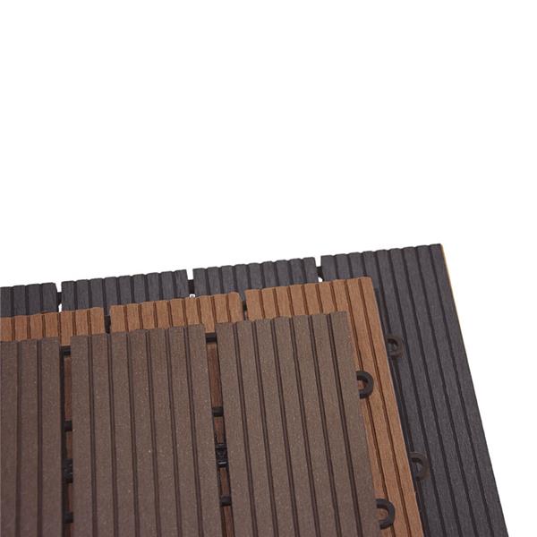 Los pavimentos de madera sintética o composite se diferencian de otros materiales por su resistencia en exteriores y durabilidad, con un acabado en marrón que le proporciona elegancia y belleza natural tanto en pavimentos de interior como exterior. Fácil de instalar 30x30x2 cm. Color antracita.
