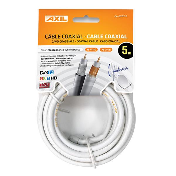 Cable blindado de baja atenuación para la óptima transmisión de la señal de TV. Flexible para una fácil instalación. Bobina colgante 5 m.