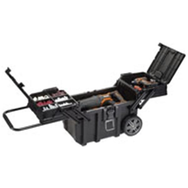 Apertura cantilever con 8 compartimentos. Divisores interiores incluidos. Mango metálico telescópico. Ruedas 7" todo terreno. 64,6x37,3x41 cm.
