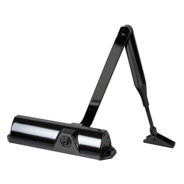 Mecanismo piñon-cremallera con brazo. Fuerza regulable EN 2-3-4. Anchura puertas hasta 110 mm. Puertas hasta 60 kg. Sin retenedor. Plata.
