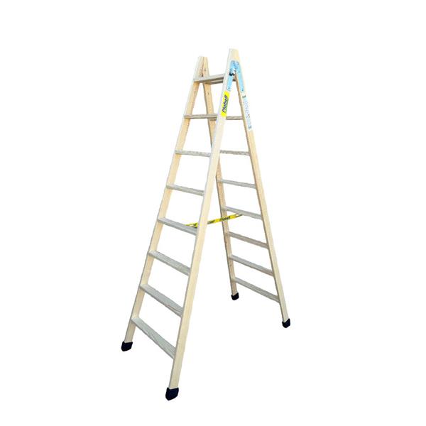 Especial pintores y electricistas. Peldaños anchos 6 cm. Montantes sección piramidal. Sistema cinta antiapertura. Incluye tacos goma antideslizantes. Gancho auxiliar. Peso máximo 150 kg. 8 Peldaños.