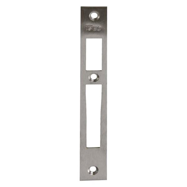 Para cerraduras de palanca y resbalón, palanca y rodillo y desviadores y palanca eléctrica. con manilla con cilindro de perfil europeo y de doble paletón embutir. Para serie 96. Acero inoxidable. 180x22x1,5 mm.