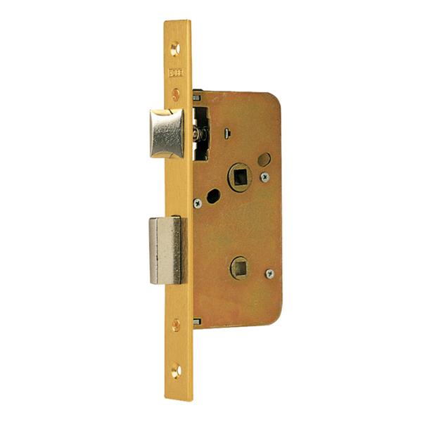 Golpe y cerrojillo pasador, reversible. Entrada 35 mm. Frente latonado.