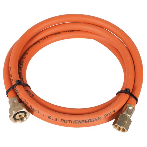 Caucho flexible de larga duración. Conexiones W21,8" lz -R3/8"lz para sopletes de butano/propano. Norma EN 559. 200 cm. Caucho