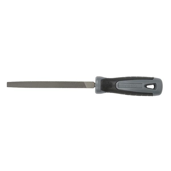 Mango plástico. Cuerpo forjado en acero al cromo. Tratamiento de templado integral. Triangular. Entrefina 6