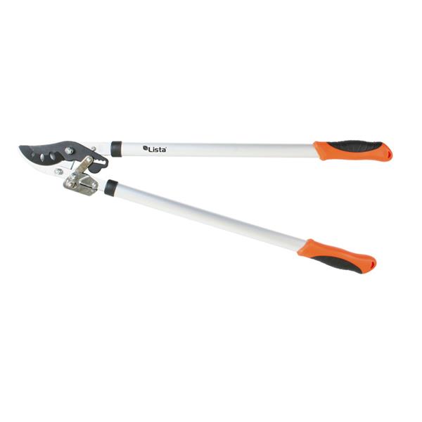Corte deslizante (Bypass). Sistema de desmulitiplicación de fuerza. Cuchilla recubrimiento antiadherente. Brazos tubulares de aluminio. Empuñaduras ergonómicas antideslizantes. Ø corte 45 mm. Longitud 76 cm.