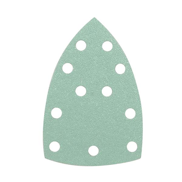 Grano óxido de aluminio electro-orientados. Base de espuma autoadherente. Soporte papel semilátex y unión de resina. 11 agujeros. 100x150 mm. Grano 60.