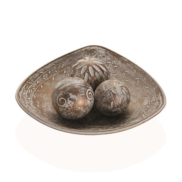 Centro de mesa con 3 bolas decorativas en acabado madera mdf. 31,5x31,5x9 cm.