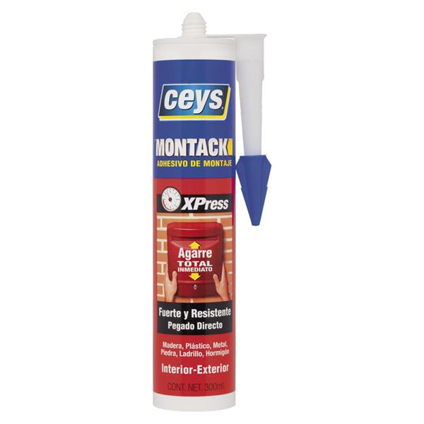 Agarre inmediato. Masilla adhesiva en base neopreno, elástica y resistente. Pega todo tipo de materiales. Cartucho 300 ml.