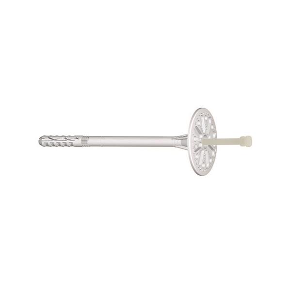 Fijación universal de golpeo con clavo de poliamida reforzada con fibra de vidrio. Profundidad corta de encastrado (30 mm) para fijar los materiales de aislamiento: EPS y XPS. Soportes según EAD 330196-01-0604: A / B / C / D / E. La caja contiene 200 unidades. 10x90 mm.