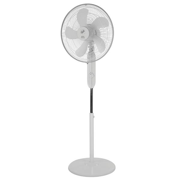 Ø 40cm. Motor silencioso 50W. 3 velocidades. Oscilación 90º. Caudal aire m3/h. Altura regulable hasta 134 cm.